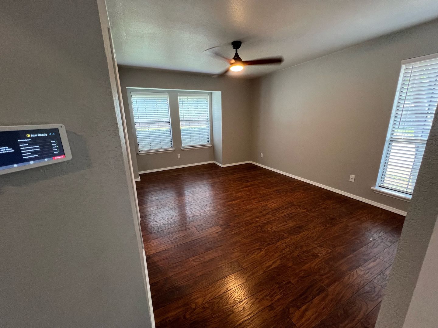 Touch panel on wall in living area, and additional touch panel on wall in master bedroom.